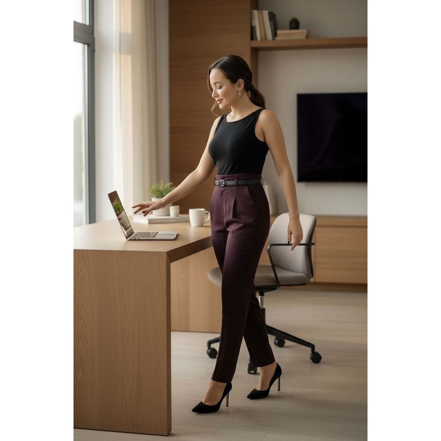 Kemerli Premium Mürdüm Kumaş Pantolon