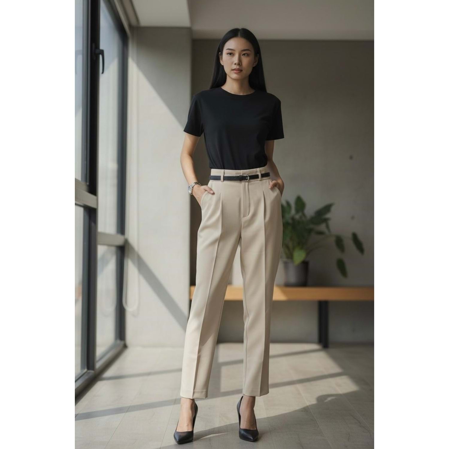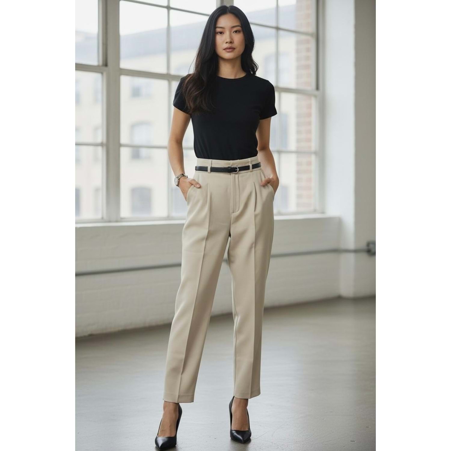 Kemerli Premium Taş Rengi Kumaş Pantolon