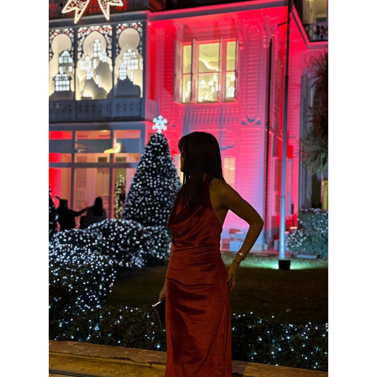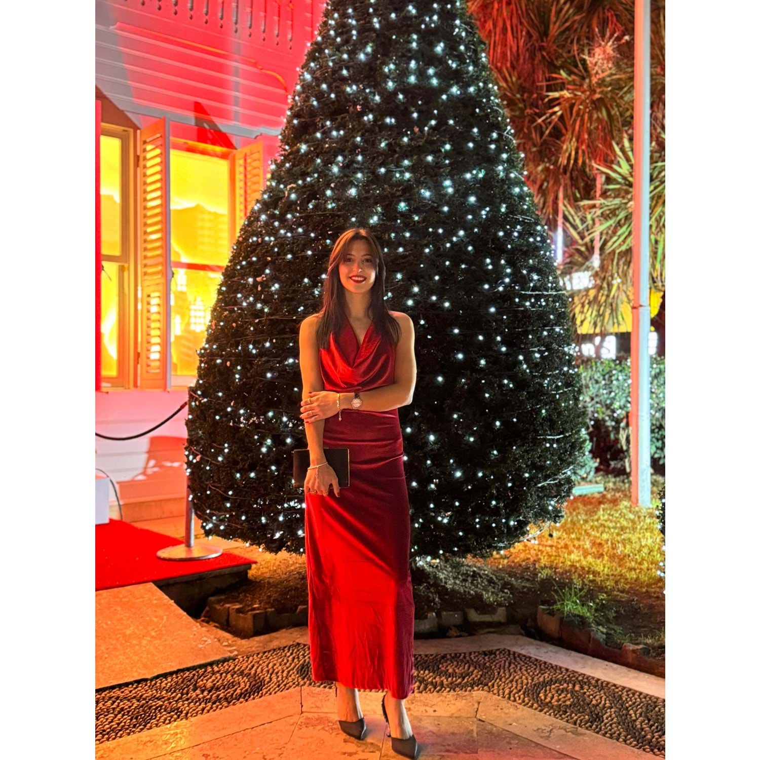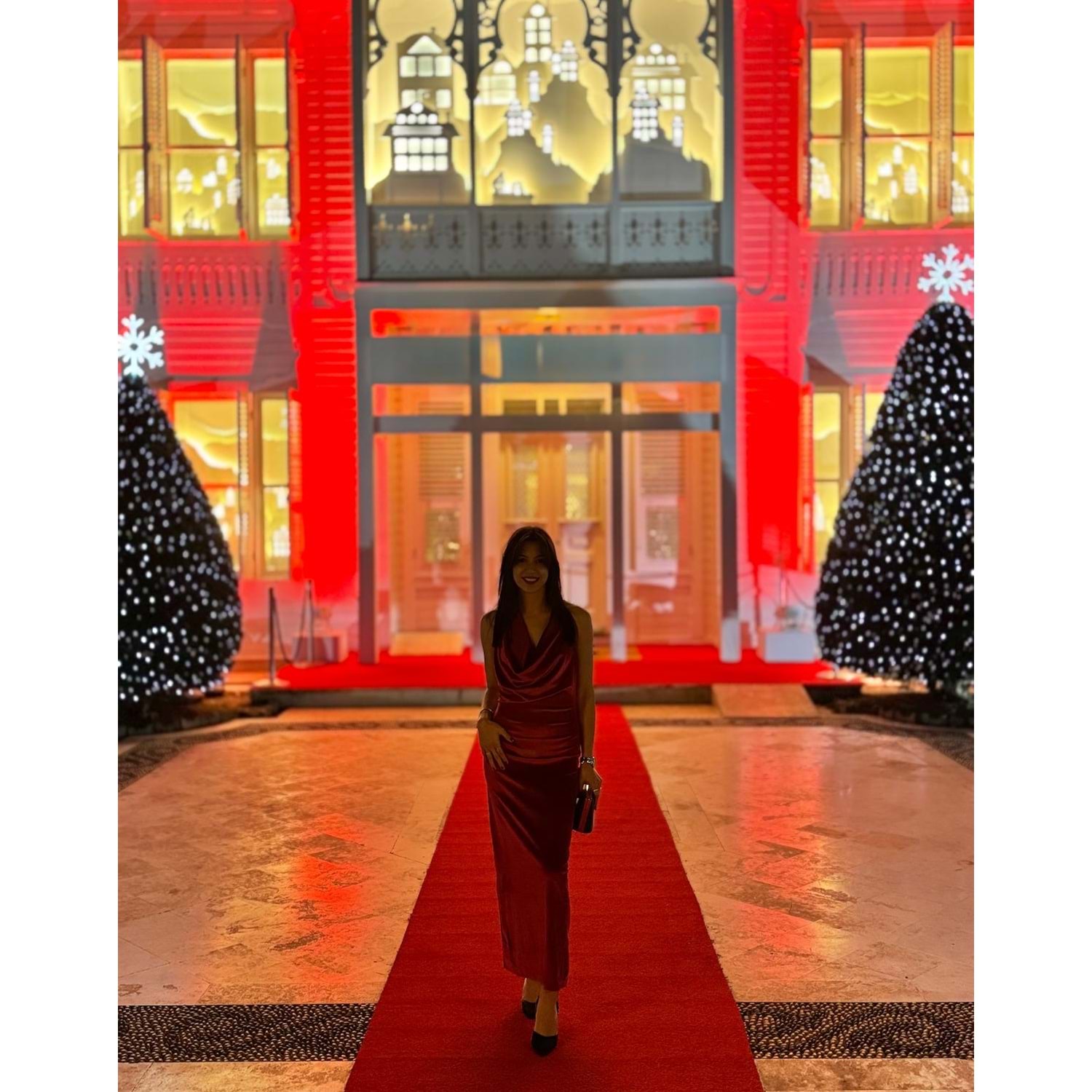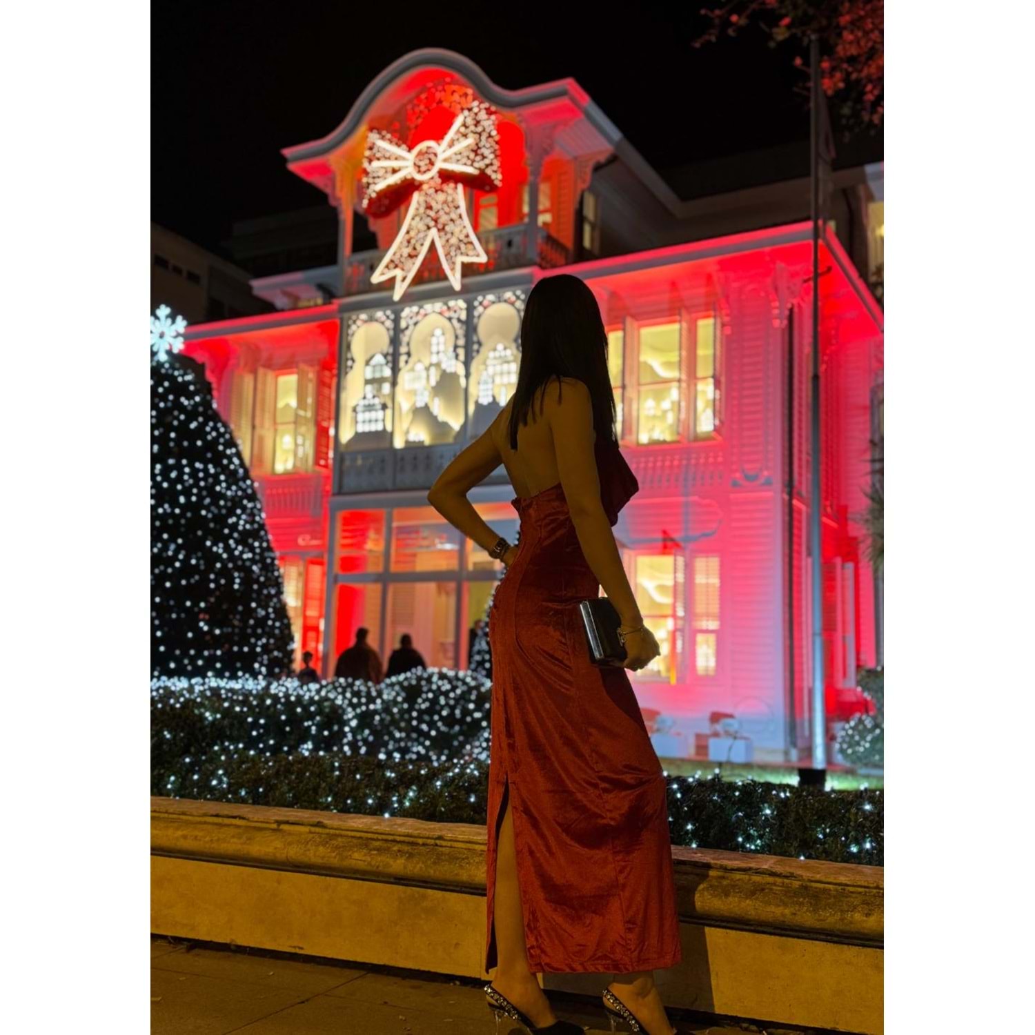 Kadife Kırmızı Sırt Dekolteli Davet Elbisesi