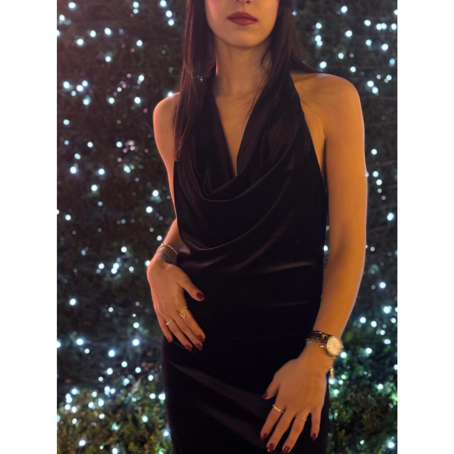 Kadife Siyah Sırt Dekolteli Davet Elbisesi