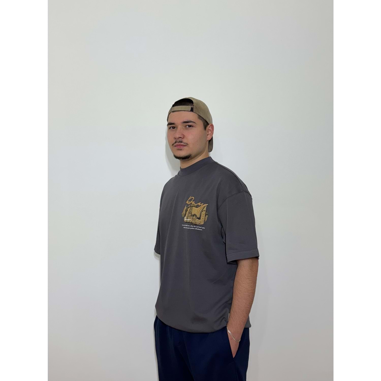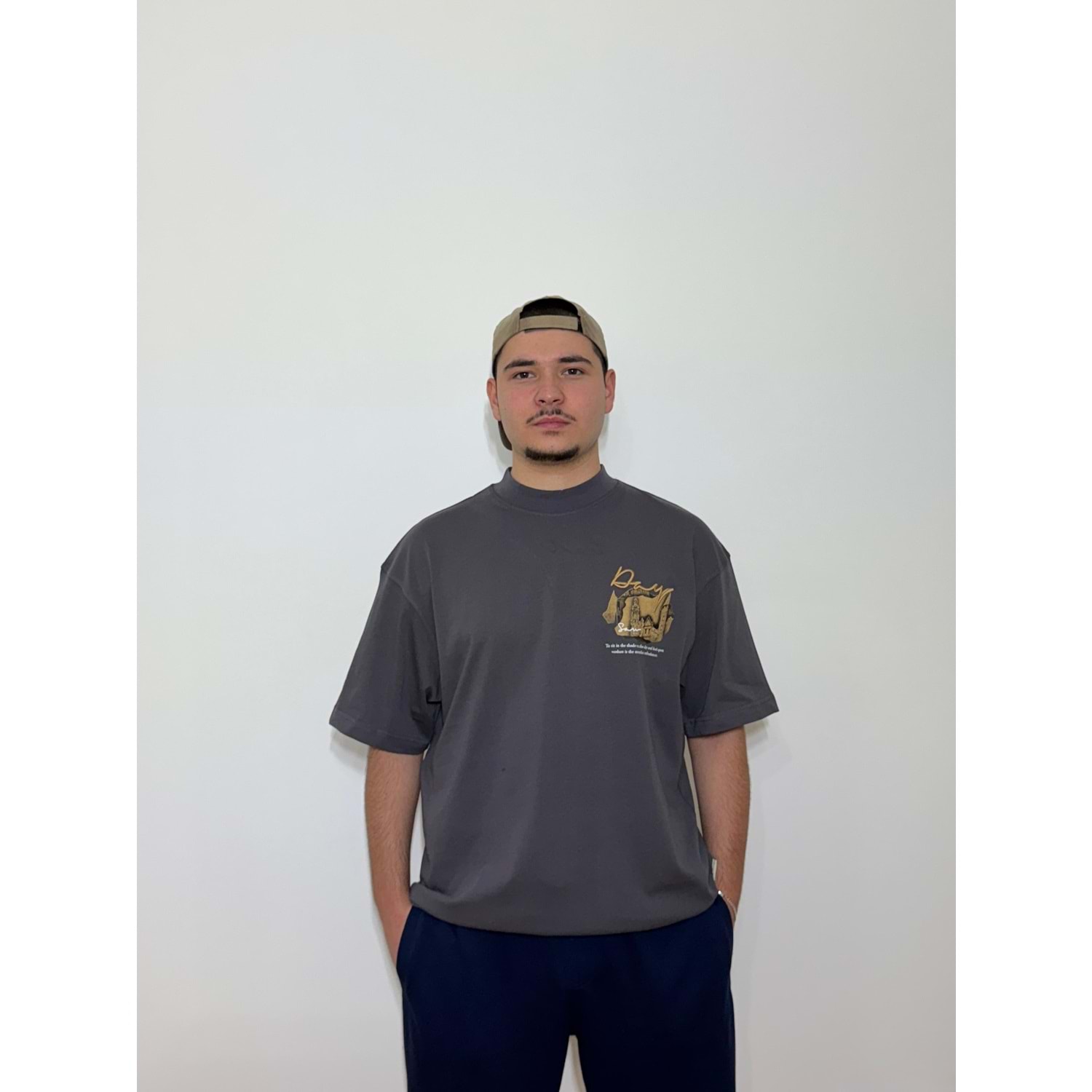 Day Baskılı Oversize Gri T-Shirt