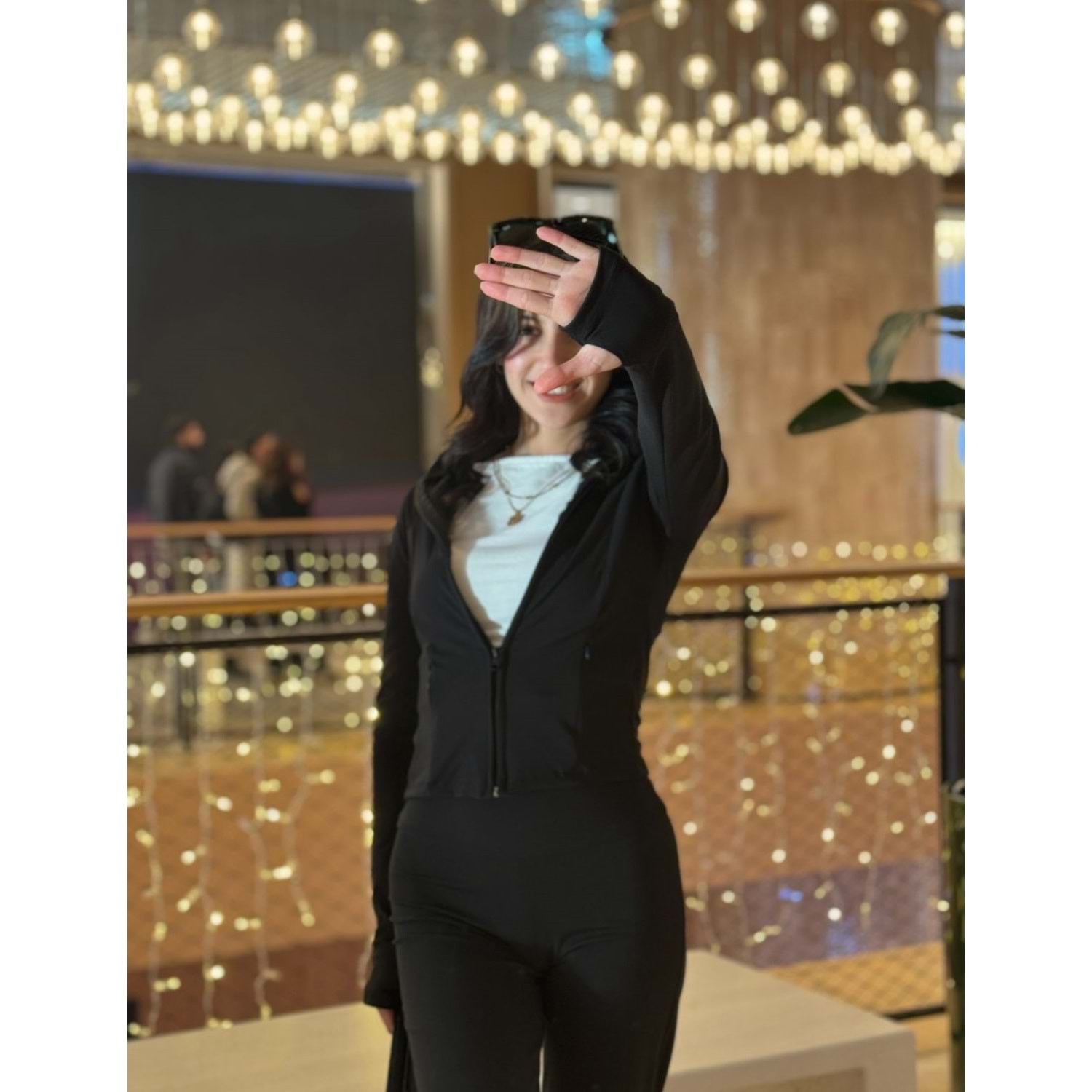 Siyah El Geçirmeli Cepli İspanyol Paça Yırtmaçlı Tayt Hırka Takım