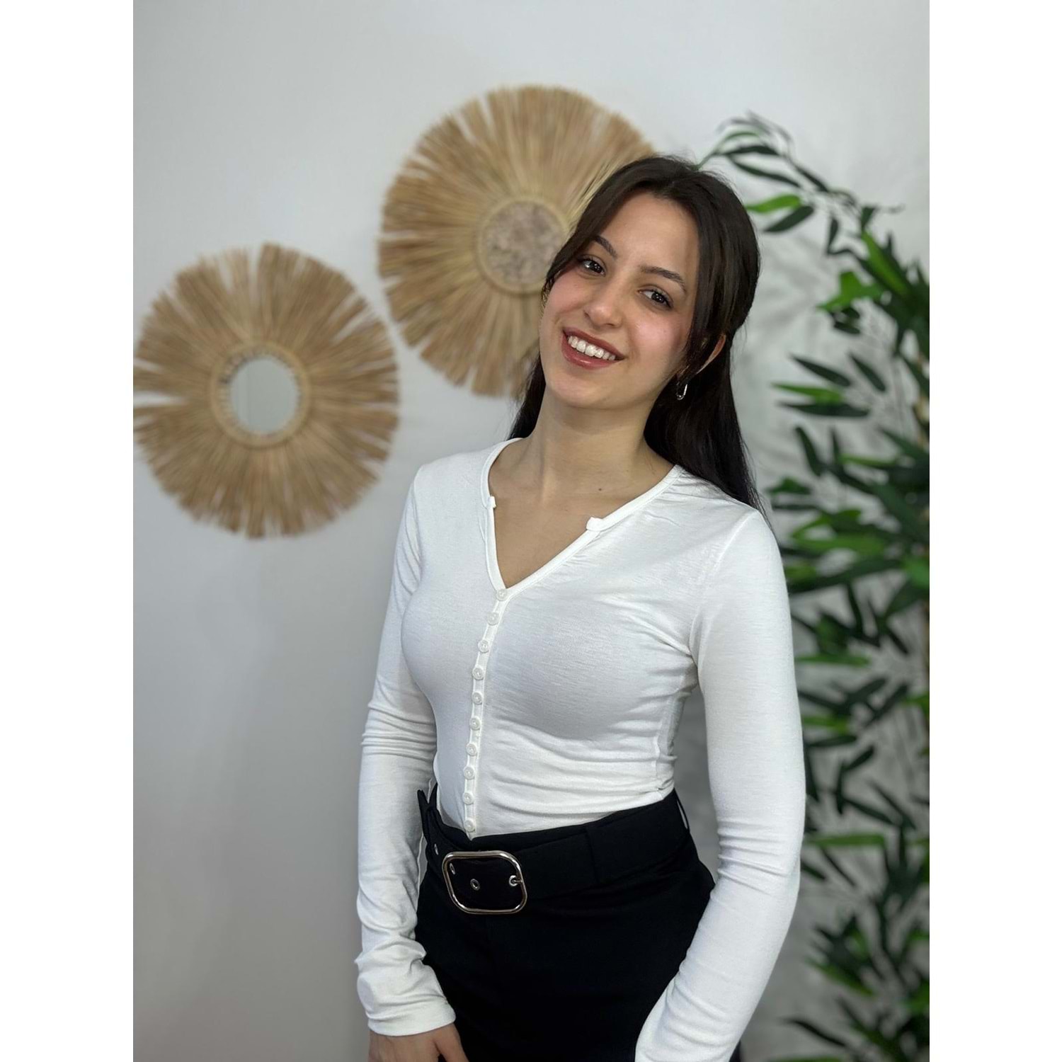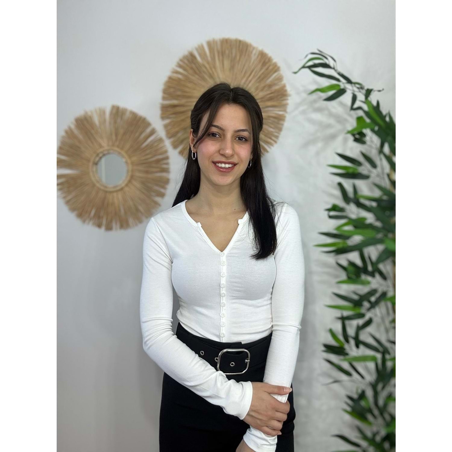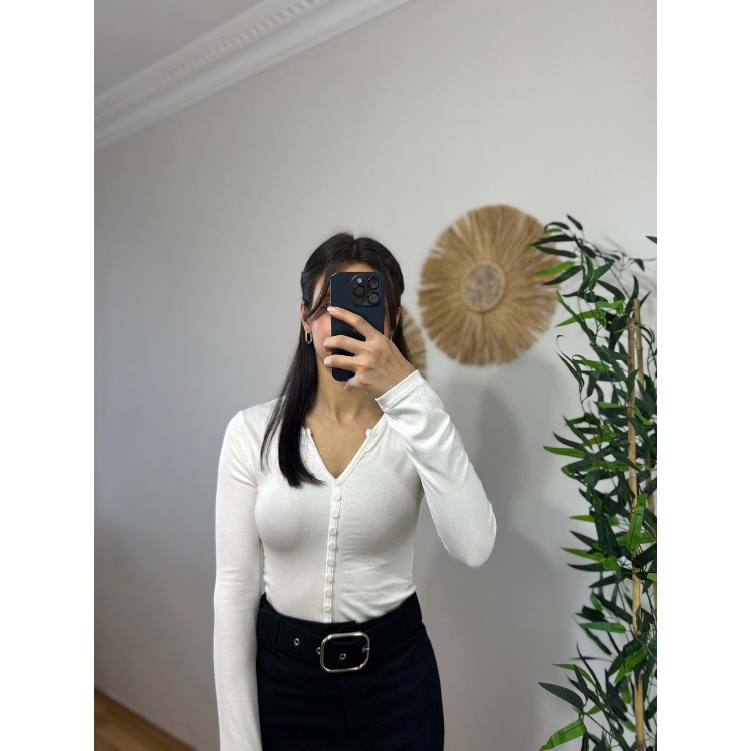 Beyaz Bisiklet Yaka Düğmeli Bluz