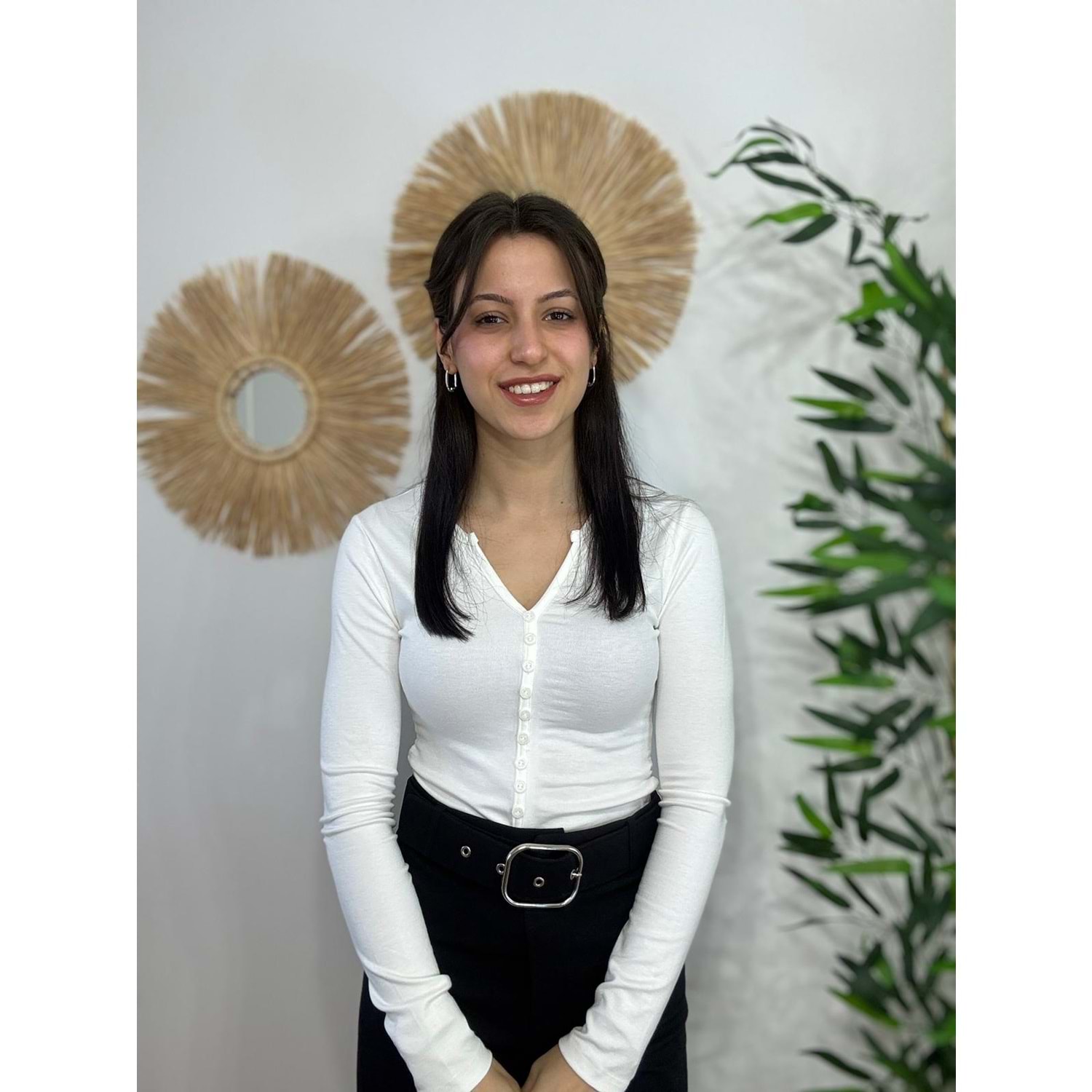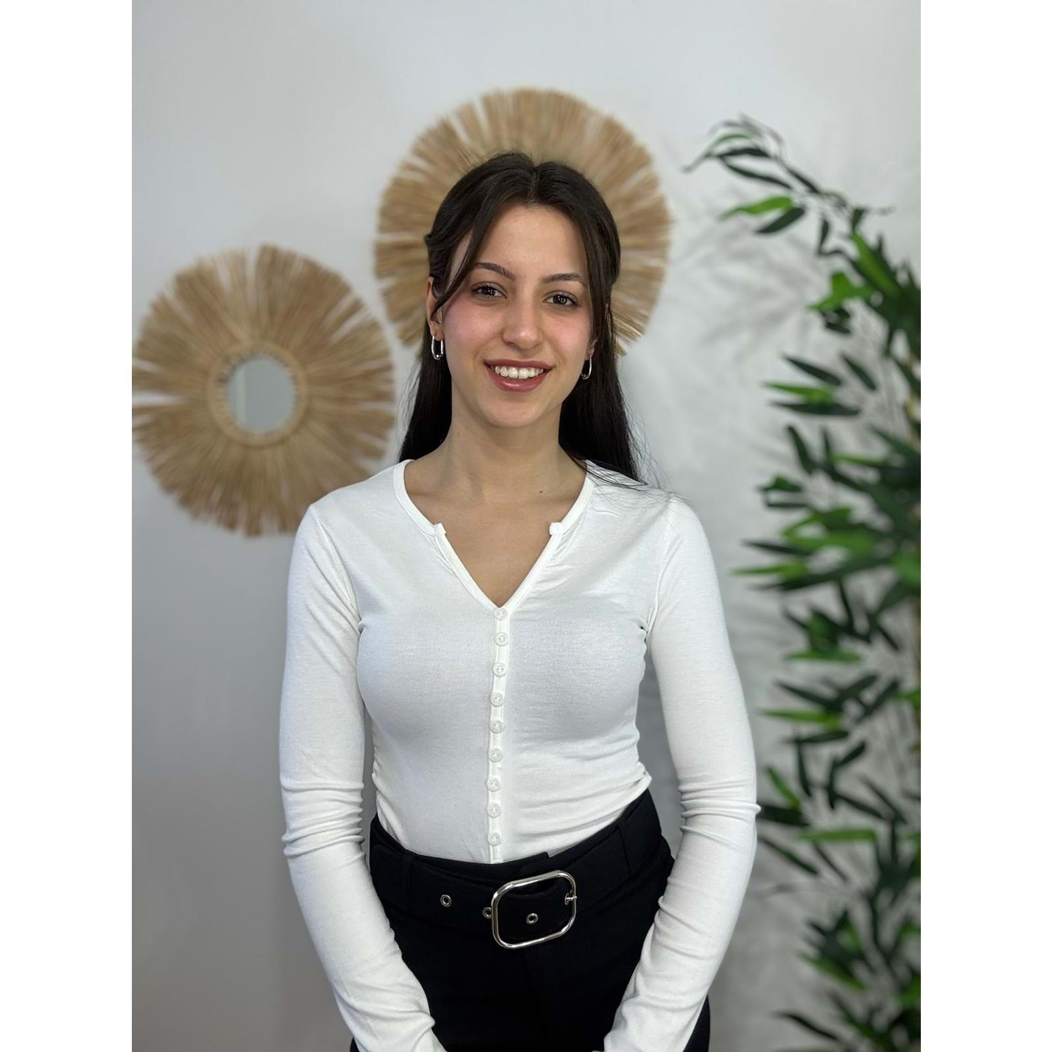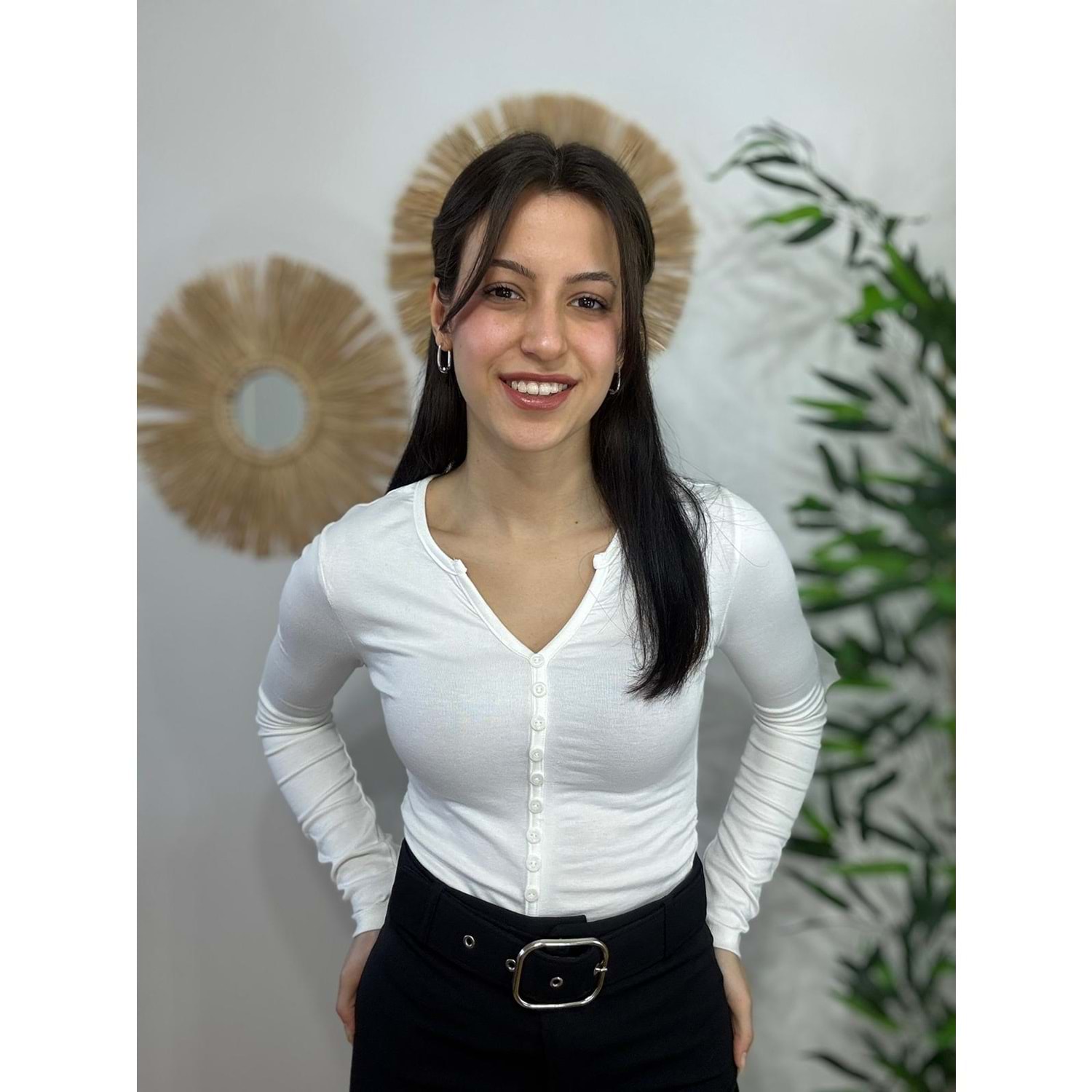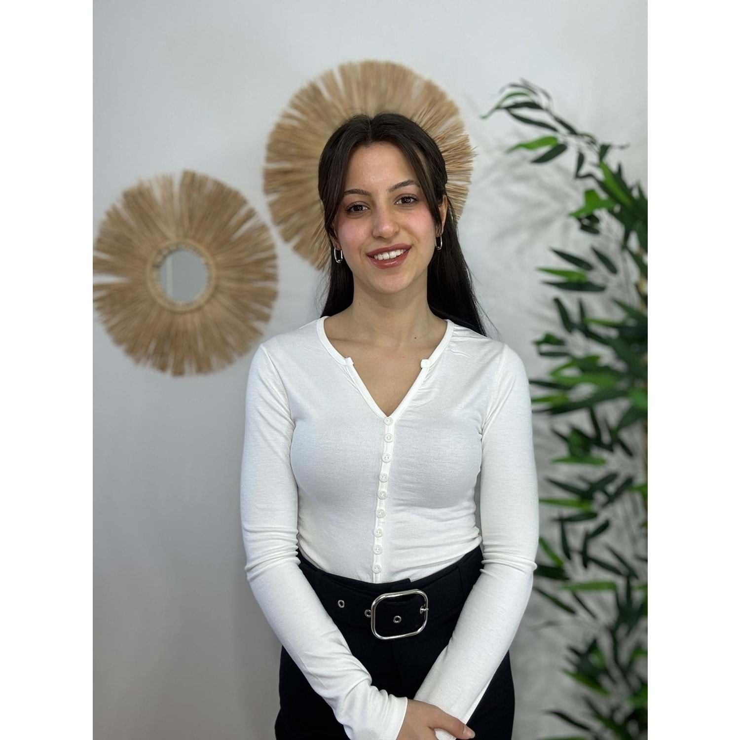 Beyaz Bisiklet Yaka Düğmeli Bluz