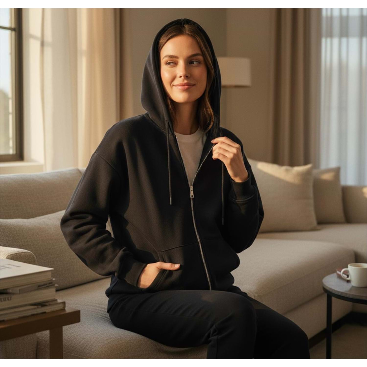 Siyah Fermuarlı Kapüşonlu Cep Detay Hırka