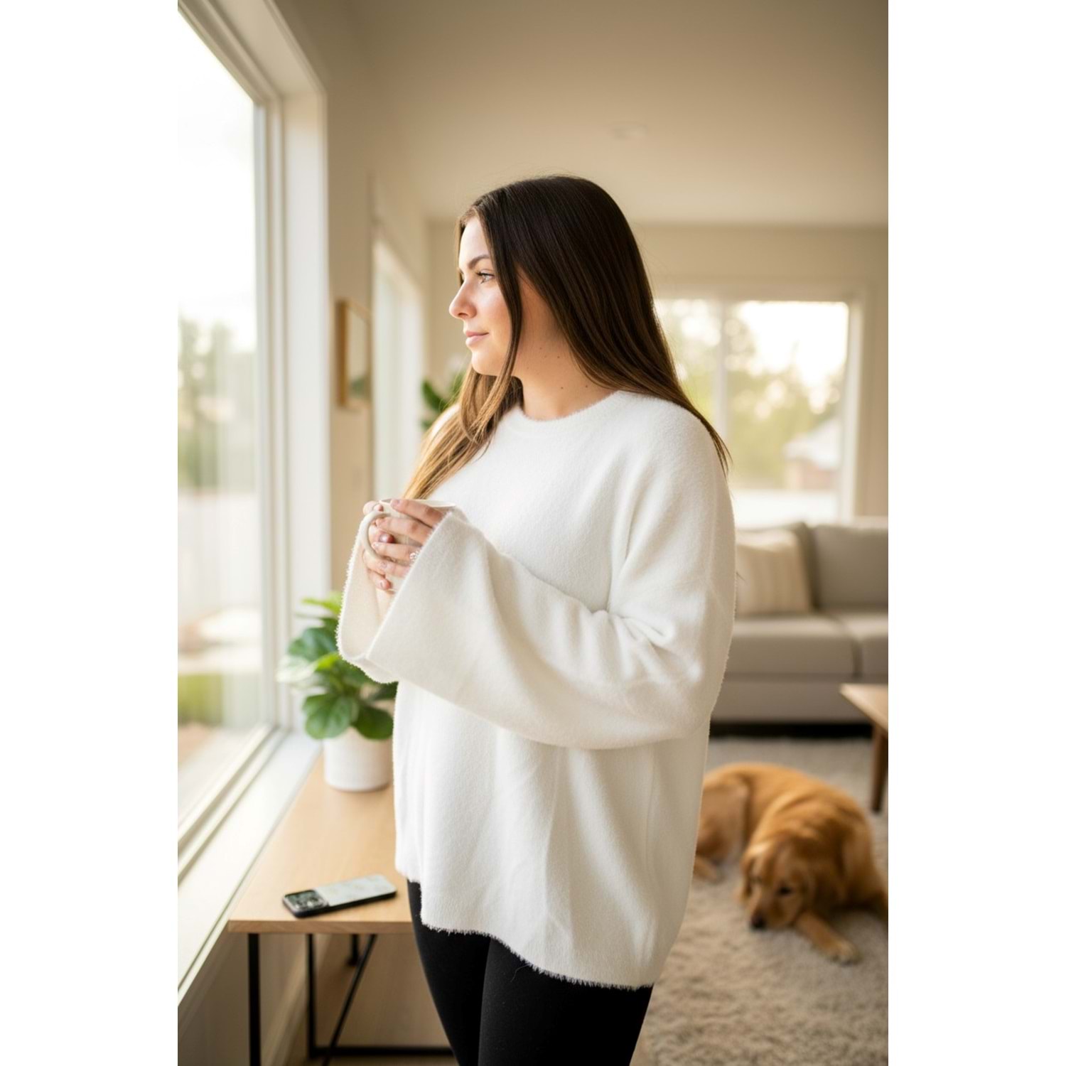 Beyaz Bisiklet Yaka Sakallı Premium Kazak